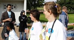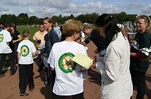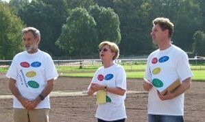 Und die Hauptorganisatoren des Sponsorenlaufs - Silke Bartolomy (Schule Hören u. Kommunikation) und Uschi Goor (Schule Sehen) - bekamen für ihre tolle Vorbereitungsarbeit jede einen dicken Blumenstrauß und viel Applaus. Ein herzliches Dankeschön natürlich auch allen Eltern und Helfern, die uns unterstützt haben.Läuferinnen und Läufer treffen sich auf dem Sportplatz des Schulzentrums Aachen-Laurensberg. Alle haben schon ihre Laufkarten, auf denen auch die Sponsoren und ihre Spenden vermerkt sind.