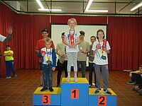 Die fleißigen Helfer vom Sponsorenlauf bereiteten indes die Urkunden und Medaillen für die Siegerehrung vor. Diese fand am Nachmittag als ein Programmpunkt des Schulfestes statt, dabei wurden ALLE geehrt, die mitgelaufen waren. Eine erste Hochrechnung der erlaufenen Sponsorengelder lag bei 2.200 - €, diese Summe wurde bei den abschließenden Berechnungen auch bestätigt. – Und das kann man als sehr schönen Erfolg verbuchen! Und nicht zu vergessen ist natürlich, dass die Weik-Stiftung nochmal für jeden Teilnehmer 5,- € dazu gibt, was bei 99 Läufern nochmals eine Summe von 495,- € bedeutet.