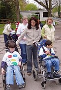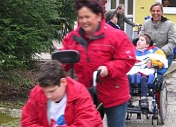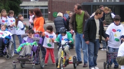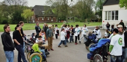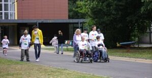 Unterstützt wurden die Schüler/-innen durch ihre Eltern, Lehrer, Erzieher, Therapeuten, Krankenschwestern, die sie auf ihren Rundläufen über das Schulgelände begleiteten.