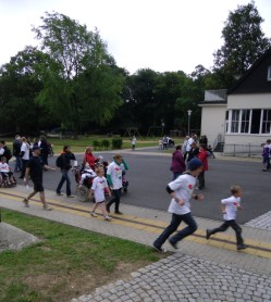 Mit allen Möglichkeiten der Fortbewegung machten sich also die Schülerinnen und Schüler gemeinsam mit ihren Begleitern auf den Weg. Rollatoren, Rollstühle -selber gefahren oder geschoben-, gehend, laufend, sprintend bewegten sie sich rund um die Schulgebäude.
