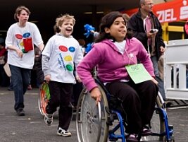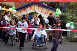 Auch die Einnahmen waren wesentlich höher als erhofft: Über 9.000,- €!Bei der Siegerehrung machte ich als ehemalige Schulleiterin meine Bewunderung und große Freude an der Veranstaltung deutlich. Deshalb bot ich auch spontan an, Herrn Weik in Zukunft ehrenamtlich bei der Zusammenarbeit mit den LVR-Schulen zu unterstützen.Nach Abschluss des Laufes war das Fest noch lange nicht zu Ende: In der Turnhalle wartete noch ein Abenteuer- und Bewegungsparcours auf immer noch Bewegungsfreudige. Die kamen dann auch noch in großer Anzahl.