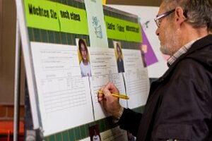 Geworben wurde außerdem bei Anwohnern, umliegenden Geschäften, ehemaligen Schülern u.s.w.. Mitarbeiter und ‚Ehrengäste’ bekamen schöne Flyer und Plakate und die Presse wurde angeschrieben.