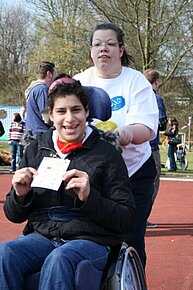 „Der Sponsorenlauf war sehr schön. Es war sehr warm und heiß. Ich bin 12 Runden gelaufen. Ein paar andere Schüler sind teilweise noch mehr Runden gelaufen, aber einige sind auch weniger gelaufen. Die Rollstuhlfahrer sind die Runden gefahren.Ich war stolz auf meine Leistung, weil ich 12 Runden gelaufen bin.“