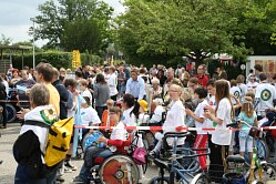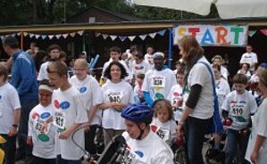 Kreativ wurden Ideen entwickelt, wie durch den Einsatz vielfältiger Fortbewegungsmittel ALLEN Schülern die Teilnahme ermöglicht werden könnte. So gab es neben den Läufern viele Schüler, die mit ihren individuellen Hilfsmitteln aktiv am Sponsorenlauf teilnahmen: mit verschiedenen Arten von Rollstühlen, Rollatoren, speziellen Fahrrädern, einem Roll-Fiets, Rollern oder Hand-Bikes.