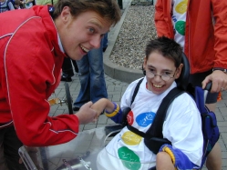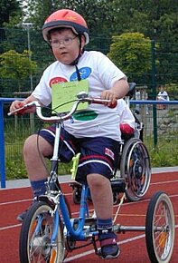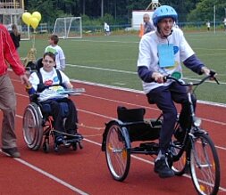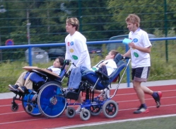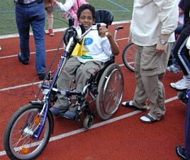 Besonders schön und beeindruckend war die insgesamt positive Veränderung eines Jungen mit progressiver Muskeldystrophie. Er absolvierte den Sponsorenlauf mit einem Therapiefahrrad.
