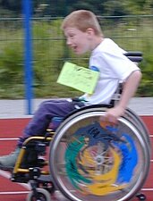 Julia drehte ihre Runden im Rollstuhl, dann kam der große Durst. Sie wollte von der Bahn um Getränk zu holen. Die Lehrerin sagte:
